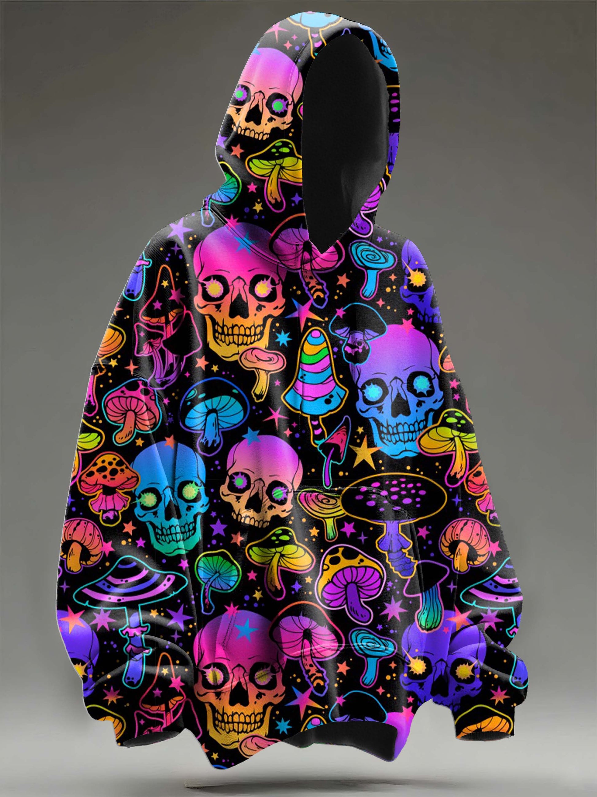 Colorful Skulls and Magic Mushrooms Casual Hoodie Sweatshirt