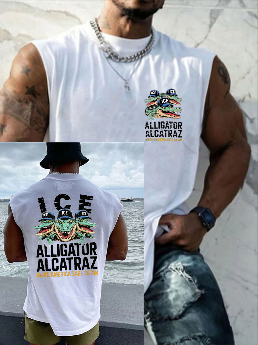 Men's Retro Alligator Alcatraz Funny Florida Everglades Dark Humor Vests