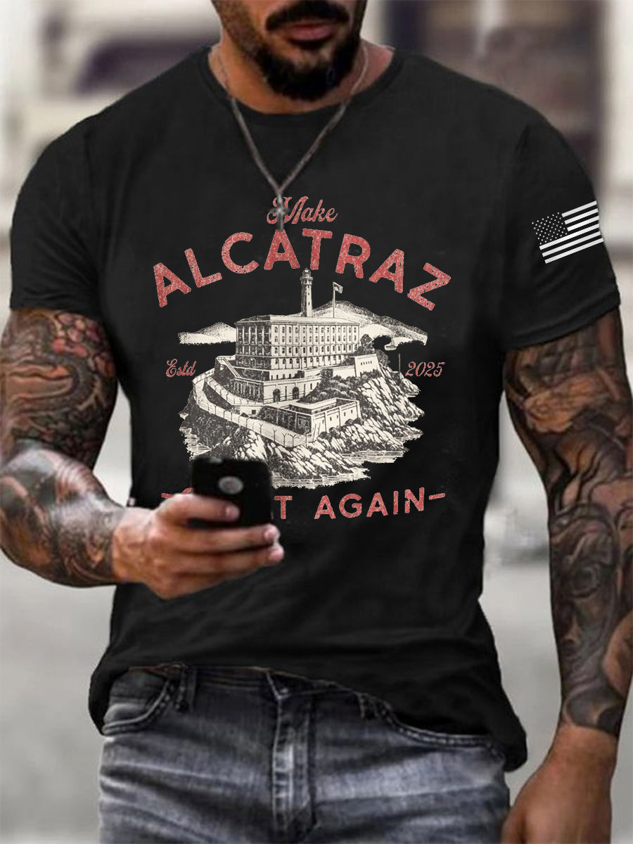 Men's Retro Make Alcatraz Great Again Funny Florida Everglades Dark Humor Tee