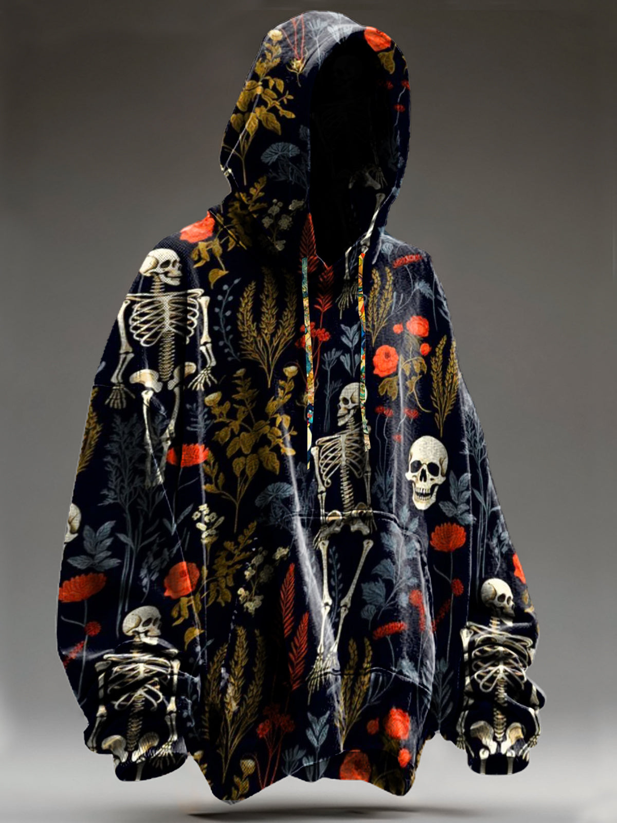 Vintage Abstract Fantasy Dark skull Art Print Casual Hoodie Sweatshirt