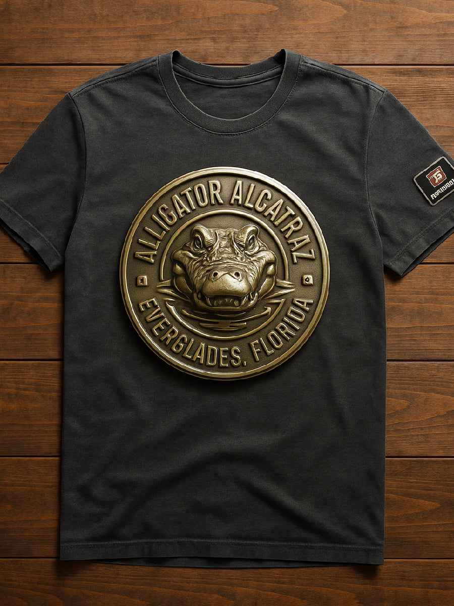 Vintage Alligator Alcatraz Fun Florida Everglades Art Print Casual T-Shirt