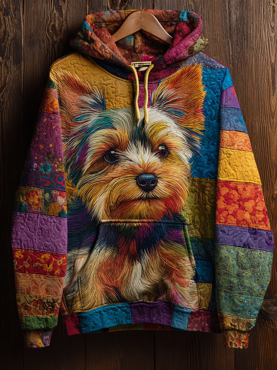 Vintage Patchwork Dog Print Art Casual Hoodie