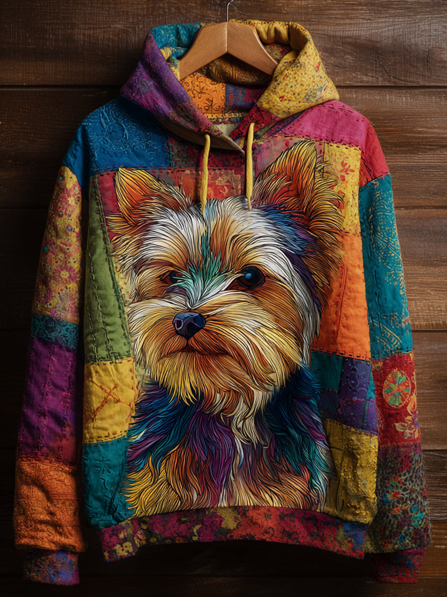 Vintage Patchwork Dog Print Art Casual Hoodie