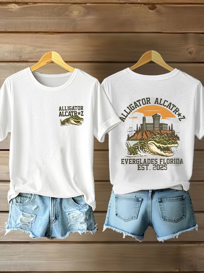 Women's Alligator Alcatraz Print Crew Neck T-Shirt