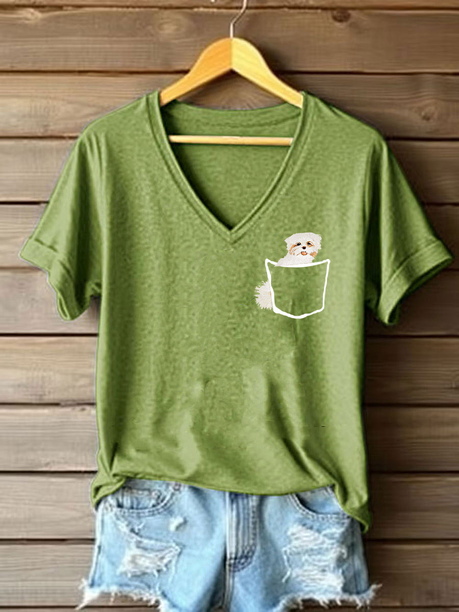 Women's Cute Dog Printed Short Sleeve T-Shirt